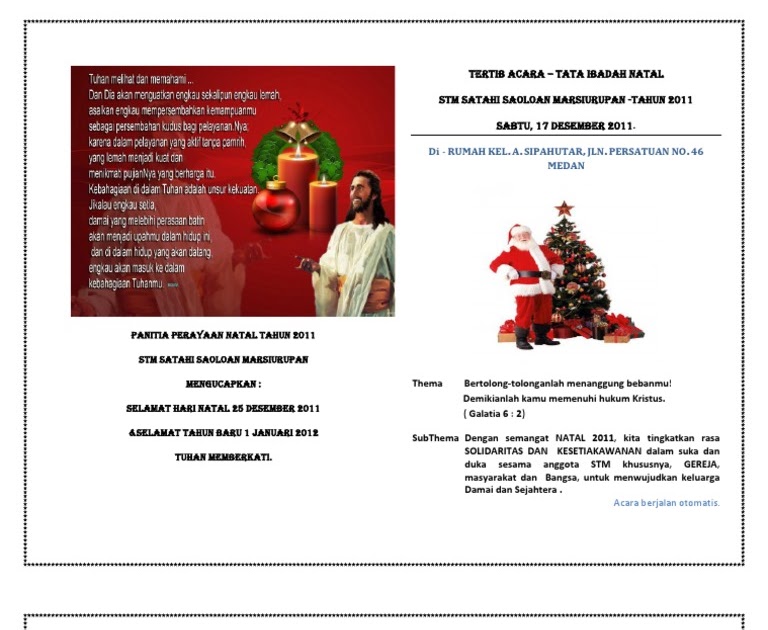 Teks Doa Pembukaan Perayaan Natal : Contoh Rundown Acara ... from lh6.googleusercontent.com Sebagian umat muslim bahkan ikut dalam perayaan dan kepanitiaan natal. Pada tahun 2012, ketua mui kh. Ma'ruf amin kembali menegaskan agar umat islam tidak memberikan ucapan selamat natal dan mengikuti natalan bersama karena akan merusak aqidah dan keimanan umat islam. Namun, ucapan selamat tahun baru masih diperbolehkan.